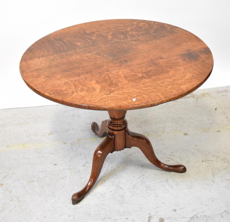 Lot 66 of 1054: A 19th century circular tilt-top table on a baluster turned column and tripartite base, height 71cm, diameter 90cm.