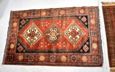 Lot 78 of 1054: Two modern Middle Eastern style rugs, one a Turkish-style example, approx 180 x 120cm, the other smaller example, 130 x 89cm (2).