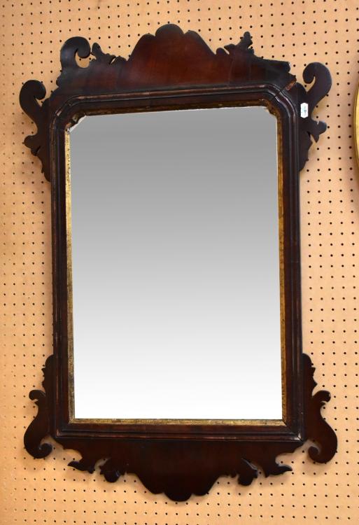 Lot 85 of 1054: A 19th century mahogany fretwork mirror with rectangular mirror plate, 87 x 57cm.