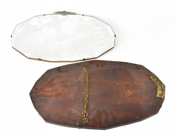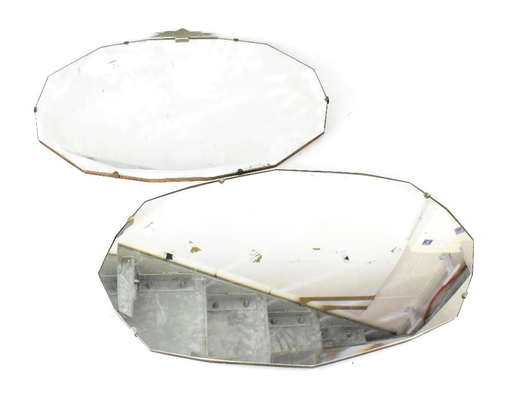 Lot 89 of 1054: Two 1940s oval bevelled wall mirrors, one with white metal top finial, 36 x 56cm (2).