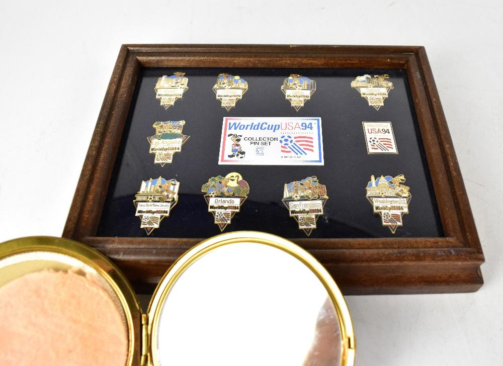 Lot 233 of 1054: Various mixed collectibles to include coins, Victory harmonica, modern pocket watch, a cased set of nine World Cup USA 94 Collectors' Pin Set, with various locations to the centre including Boston, Chicago, Dallas, Detroit, etc, framed and glazed, various British, world and antique coins, etc.