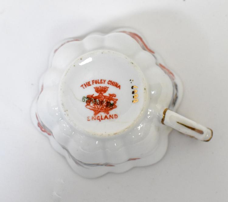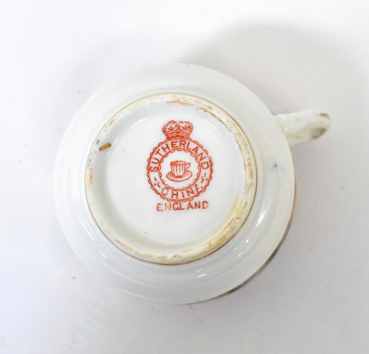 Lot 284 of 1054: FOLLET; an early 20th century tea service in the Imari palette with chrysanthemum decoration and cobalt blue panelled, gilt edge heightened throughout, comprising sandwich/cake plate, side plates, saucers, cups, slop bowl, sugar bowl and milk jug, etc, together with a similar part tea service in the Imari palette, comprising cups, saucers, plates, sugar bowls and slop bowl.