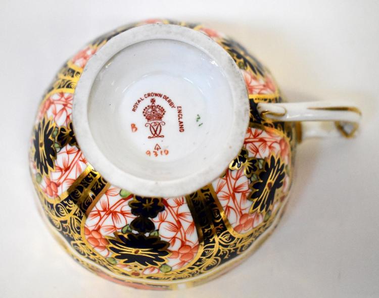 Lot 282 of 1434: ROYAL CROWN DERBY; various Imari patterned cups, saucers and side plates, to include four cups, four saucers and three side plates, diameter 15.5cm in pattern no.1128, teacup with ring handle, side plate, miniature cabinet display mug, height 3.8cm and a coal bucket/pail, height approx 6.5cm in pattern no.2451 (15).