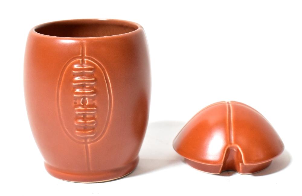 Lot 287 of 1434: SYLVAC; a brown glazed jam or preserve pot modelled as a rugby ball, model no. 4715, approx 12 x 7cm.