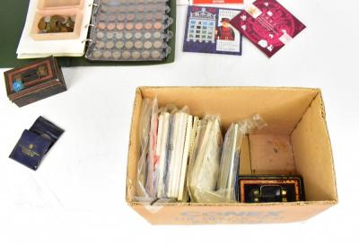 Lot 1020 of 1434: A large collection of coins comprising Brilliant Uncirculated British coins, to include 1985, 1986, 1987, 1988, 1989, 1990, 1991, 1992, 1993, 1994, 1995 and 1996, a 1989 uncirculated £2 coin commemorating Queen Elizabeth the Queen Mother's 90th birthday, National Trust Centenary, 'In Peace Goodwill' £2 coin, 1997 £2 coin, Euro Tunnel 94 commemorative medallion, a Queen Elizabeth II 70th Birthday commemorative crown, two folders of mostly pre-decimal British coins and bagged and tinned commemorat