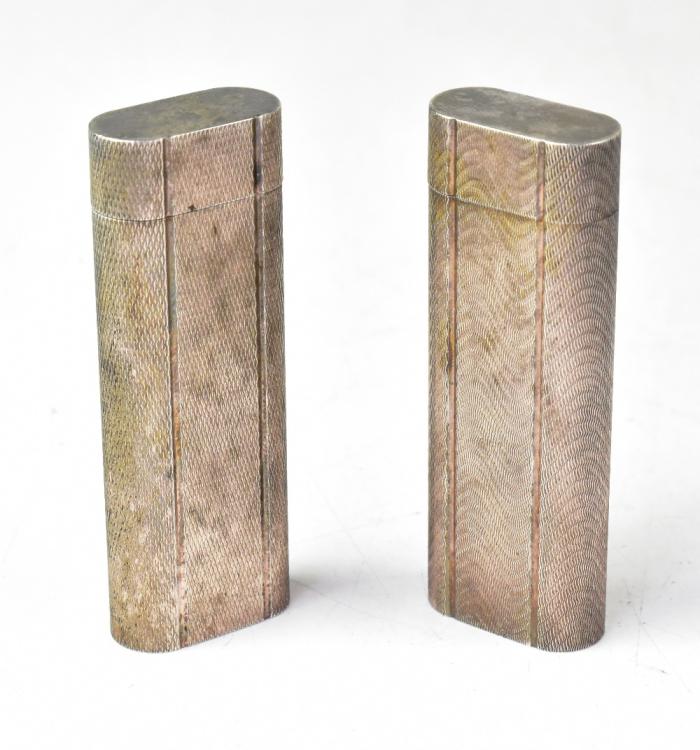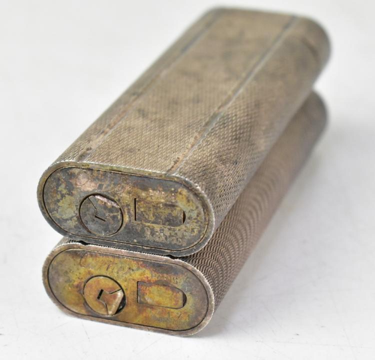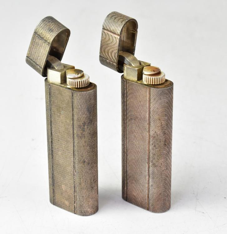 Lot 55 of 1032: CARTIER; two lighters both a silvered colour and each with engine turned decoration, length 7.2cm (2).