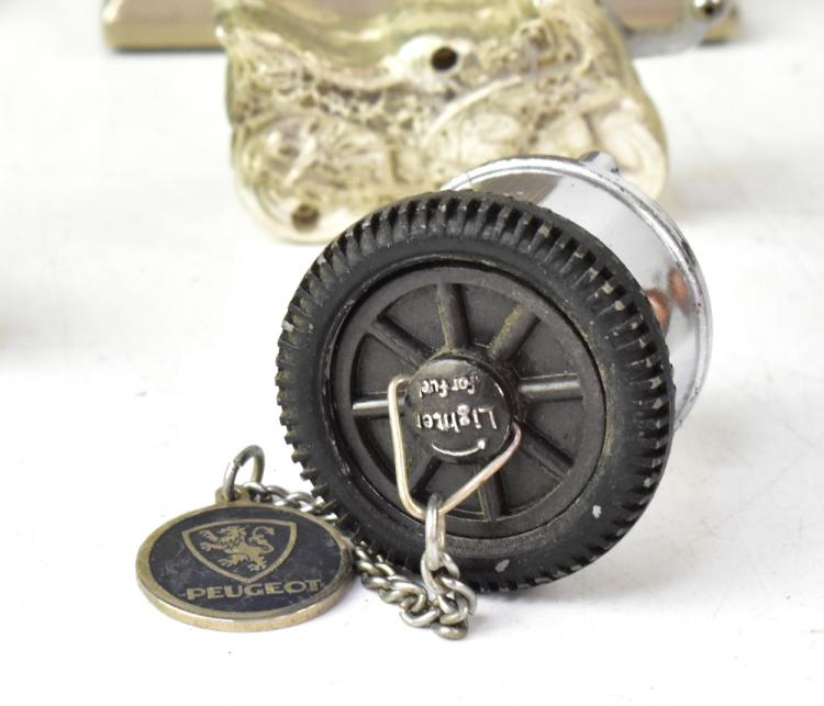 Lot 58 of 1032: Six novelty lighters relating to automobilia and shipping to include two in the form of racing cars, another two in the form of motorbikes, a ship stamped 'MTC' to base, a car radiator stamped 'PGR' and another with a base in the form of a tyre.