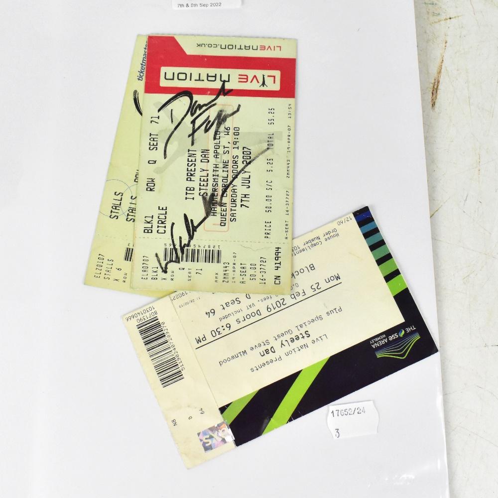Lot 579 of 1354: STEELY DAN; three ticket stubs for concerts, two of which bear signatures (3). We have not authenticated these signatures, please satisfy yourself as to the veracity of the item prior to bidding.