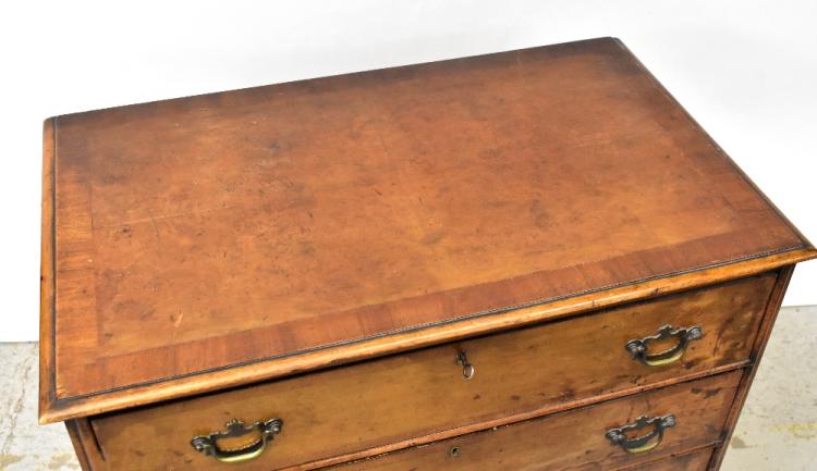 Lot 26 of 1102: A Georgian crossbanded walnut chest of four drawers, raised on bracket feet, 78 x 80 x 48cm.