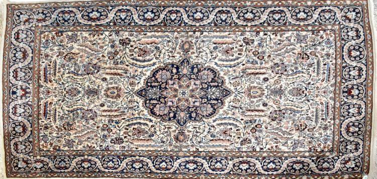 Lot 62 of 1102: A contemporary cream ground rug with central floral medallion within stepped floral border, 229 x 141cm.