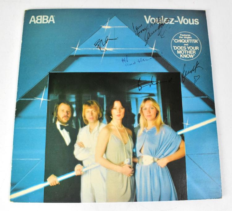 Lot 529 of 1181: ABBA; LP 'Voulez-Vous', bearing the band's signatures. We have not authenticated these signatures, please satisfy yourself as to the veracity of the item prior to bidding.