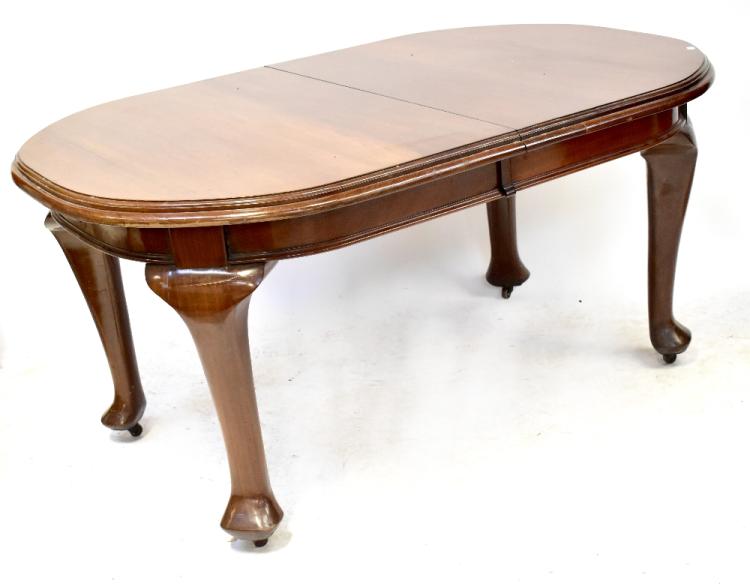Lot 62 of 1231: A Victorian mahogany wind-out dining table on cabriole legs, with one extra leaf, 77 x 210 x 108cm (when extended).