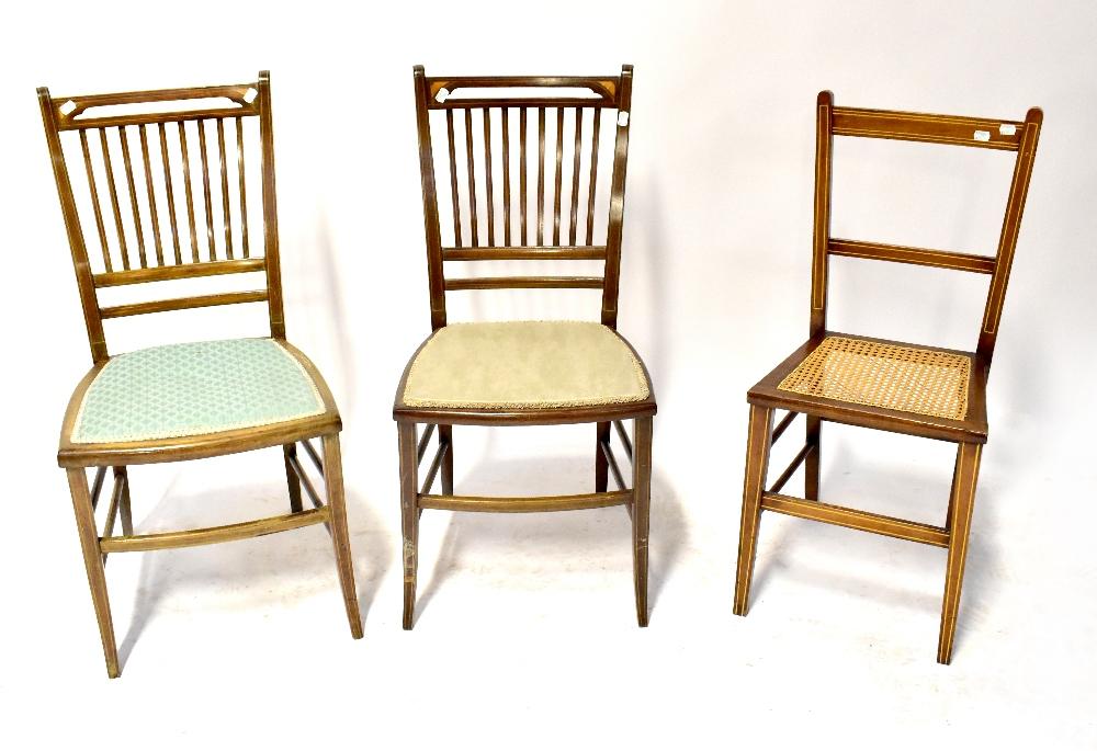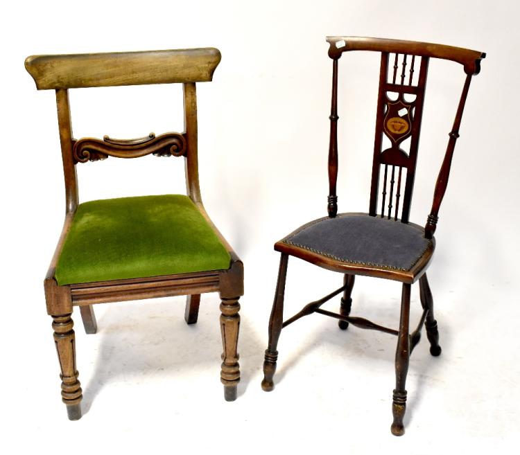 Lot 68 of 1231: A William IV mahogany bar back dining chair, together with four various Edwardian chairs (5).