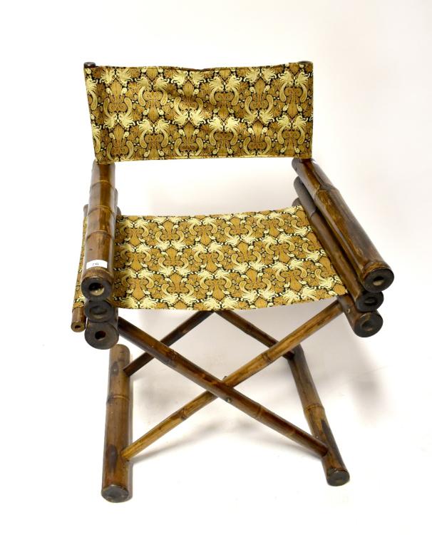 Lot 76 of 1231: An Oriental bamboo folding armchair with material seat and back rest, height 96cm.