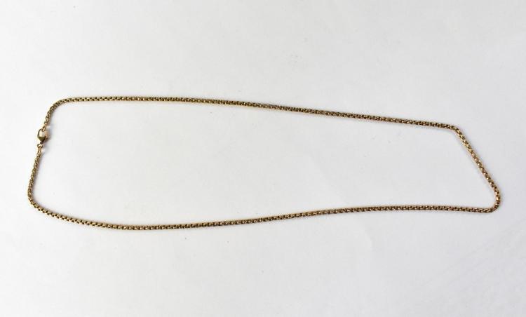 Lot 1063 of 1231: A 9ct gold thin belcher link necklace, length 45cm, approx 8.8g.