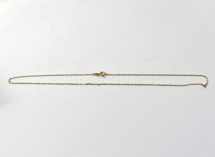 Lot 1064 of 1231: A 9ct thin necklace, length 48cm, approx 2.4g.
