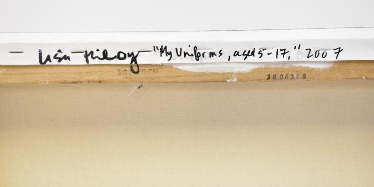 Lot 10 of 104: LISA MILROY; oil on canvas, 'My Uniforms Age 5-17', 40 x 50cm.