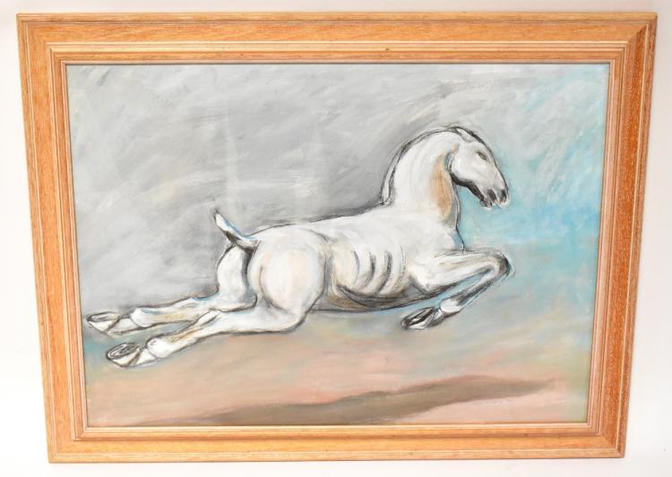Lot 16 of 104: JULIA MIDGLEY; acrylic and pastel, 'Capriole', 67 x 86cm, framed.
