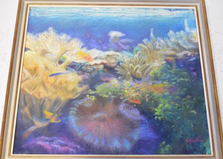 Lot 36 of 104: GRAHAM PAINTER (1947-2007); pastel, 'Coral Reef', 865 x 76cm