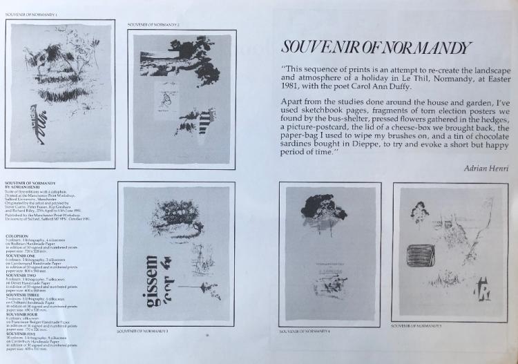 Lot 49 of 104: ADRIAN HENRI (1932-2000) (donated by Catherine Marcangeli); artists proof lithograph, 'Souvenir of Normandy 4', signed,