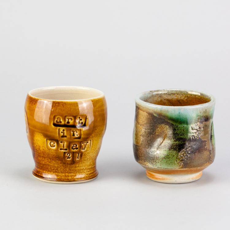 Lot 8 of 534: MAY LING BEADSMOORE (born 1970); a soda glazed stoneware cup, impressed MLB mark, height 8cm, and an Andrew Mason cup commemorating Art in Clay 2021 (2). (D)