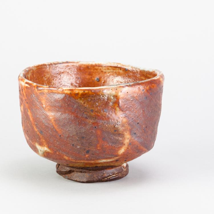 Lot 14 of 534: CHARLES BOUND (born 1939); a wood fired stoneware chawan covered in shino glaze, impressed mark, diameter 14cm.  Provenance: Purchased from the Booth House Gallery, Holmfirth, 1991.