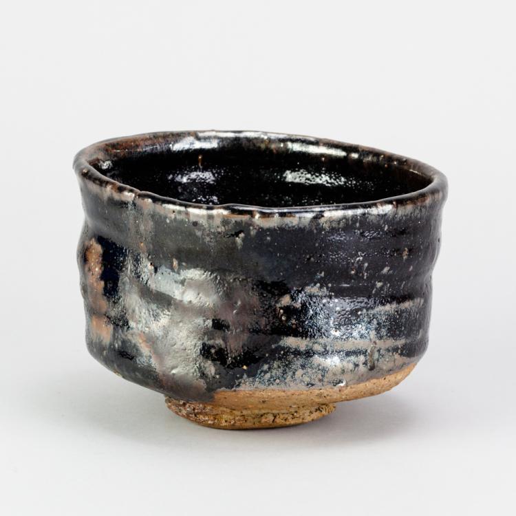 Lot 18 of 534: CHARLES BOUND (born 1939); a wood fired stoneware chawan covered in tenmoku and kaki glaze, impressed mark, diameter 15cm.  Provenance: Purchased from the artist, 1991.