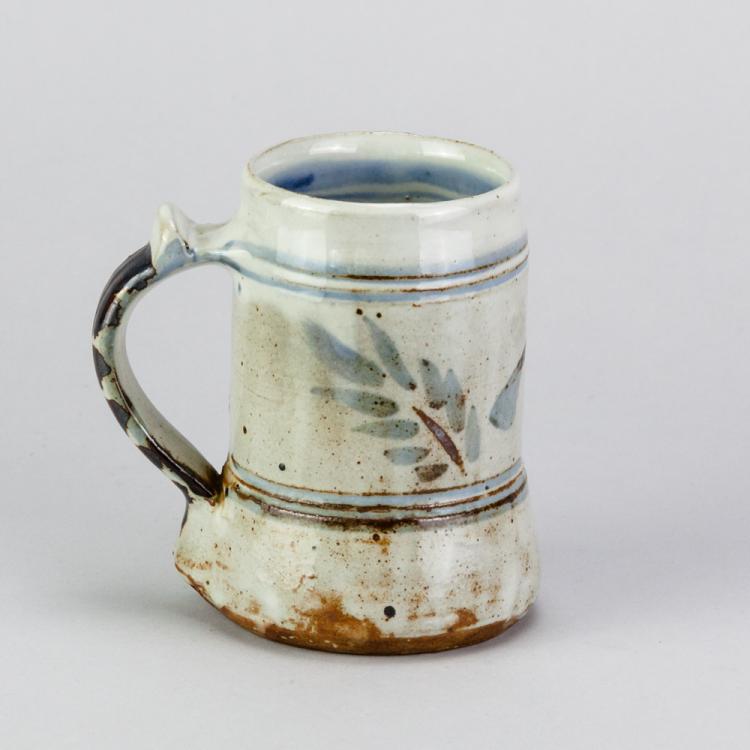 Lot 38 of 534: SETH CARDEW (1934-2016) for Wenford Bridge Pottery; a stoneware mug covered in grey glaze with iron bird and cobalt decoration, impressed SC and pottery marks, height 11.5cm. (D) Provenance: Purchased from the artist, 1991.