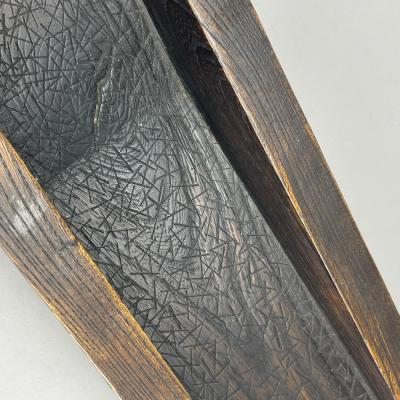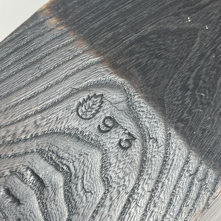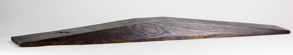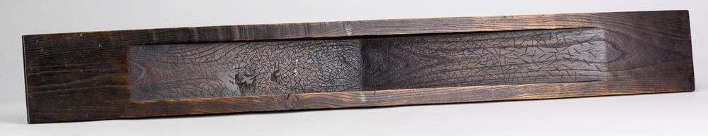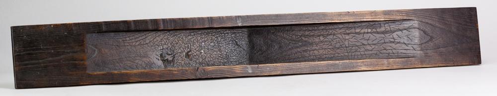 Lot 523 of 534: EDWARD TEASDALE (born 1945); a long sculptural form made of scorched reclaimed wood, impressed leaf mark dated 1993, 90 x 11 x 6cm. (D)