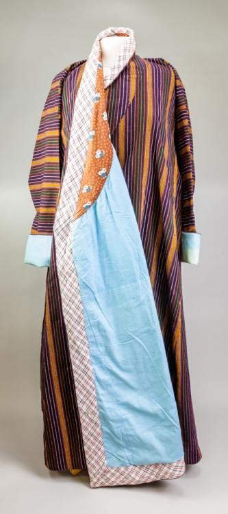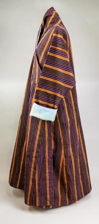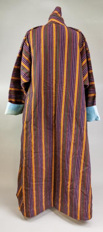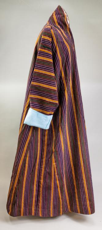 Lot 533 of 534: A gho, the Bhutanese national dress worn by men, and a kabney raw silk scarf (2).