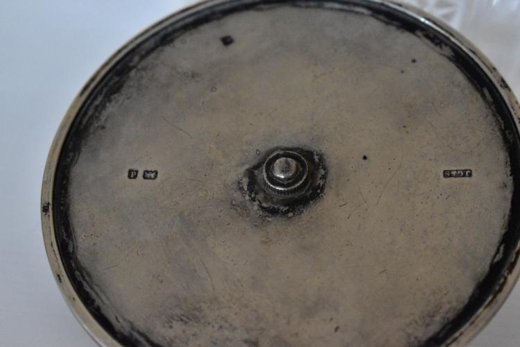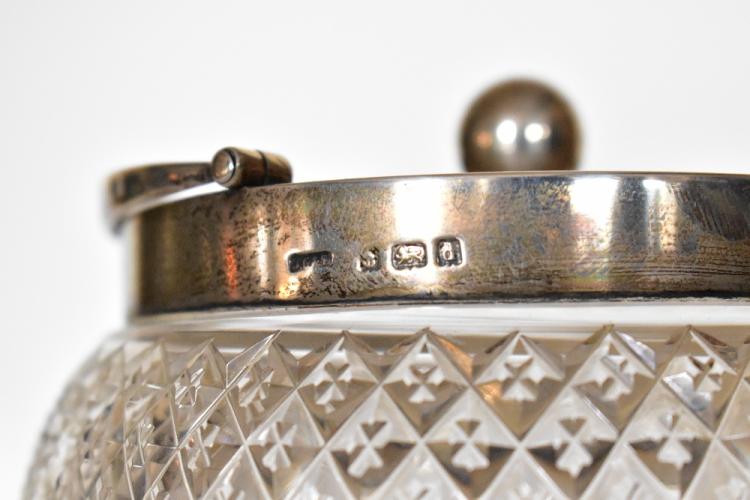Lot 5 of 616: JOHN GRINSELL & SONS; a Edward VII cut glass biscuit barrel with hallmarked silver rim, cover and swing handle, Birmingham 1903, height including swing handle 20cm.