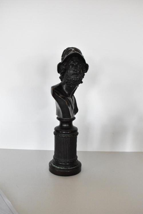 Lot 27 of 616: A reproduction bronzed bust of Menelaus on integral plinth, height 47cm.