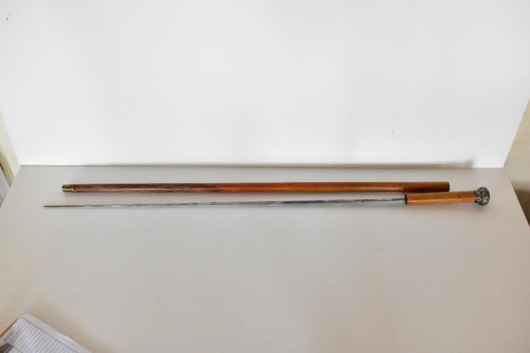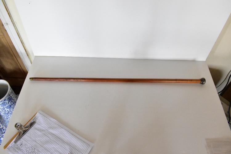 Lot 35 of 616: A late 19th century malacca sword stick, the blade with niello type decoration with white metal cap (probably silver), overall length 90cm.