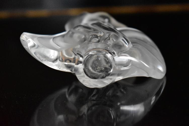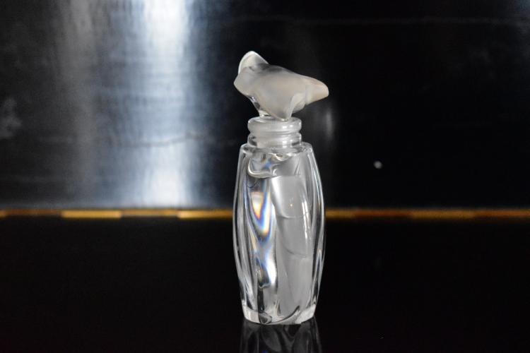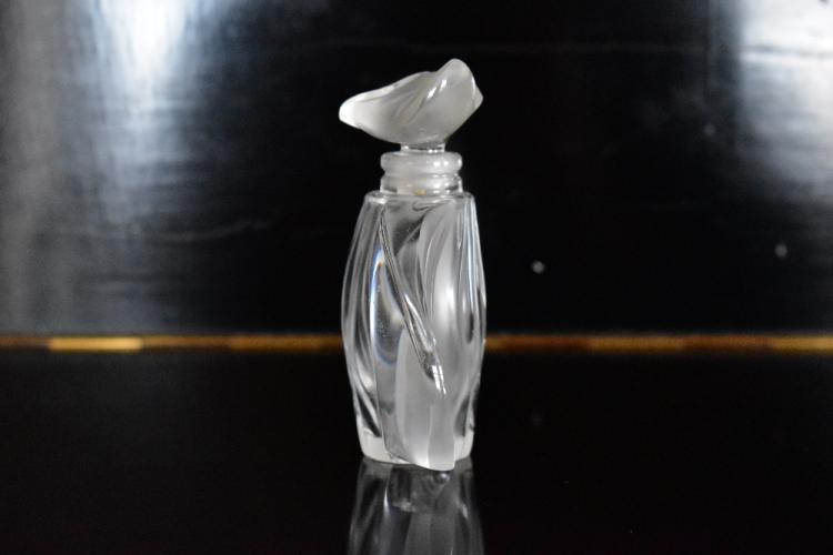 Lot 49 of 616: LALIQUE FRANCE; a contemporary clear and frosted modern glass perfume bottle and stopper, signed to base.
