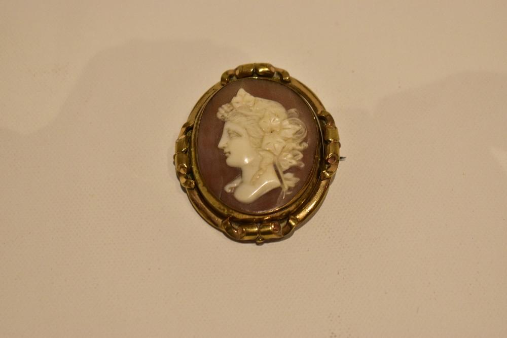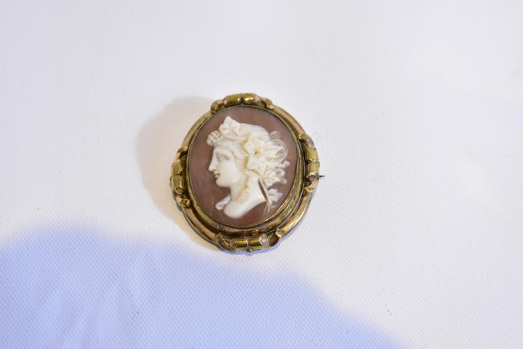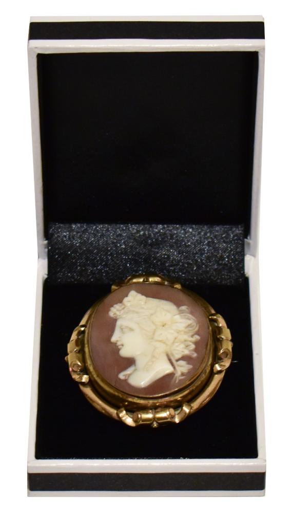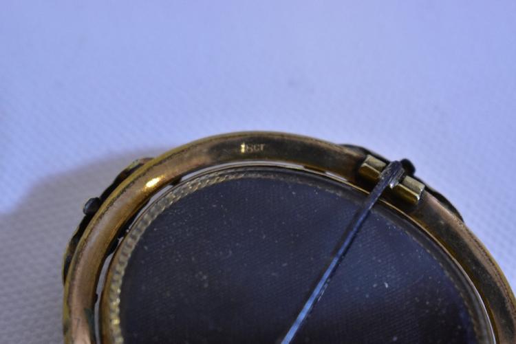Lot 58 of 616: A Victorian 18ct yellow gold mounted cameo mourning brooch with swivel centre, stamped 18ct, approx 5 x4.5cm, approx 22g.