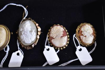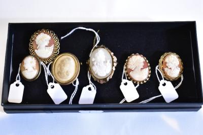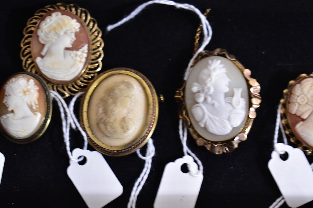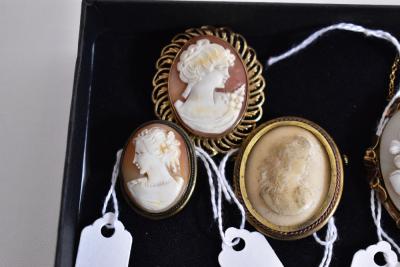 Lot 59 of 616: Five decorative cameo type brooches and a similar pendant each of oval form (6).