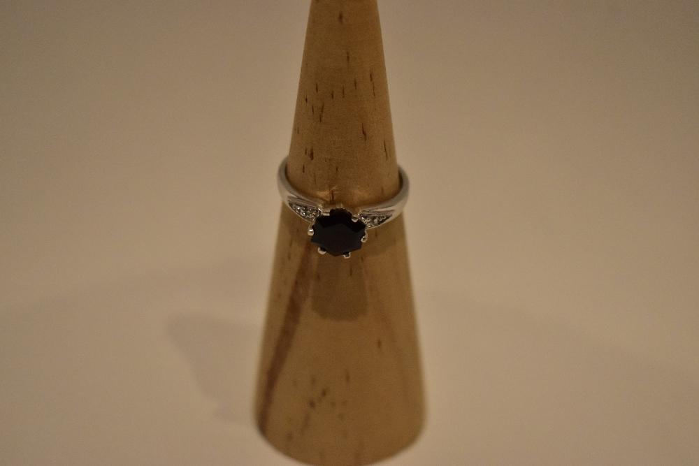 Lot 79 of 616: Two 9ct white gold dress rings including an example set with a hexagonal garnet coloured stone, size N, and two 9ct yellow gold dress rings, combined approx 10g (4).