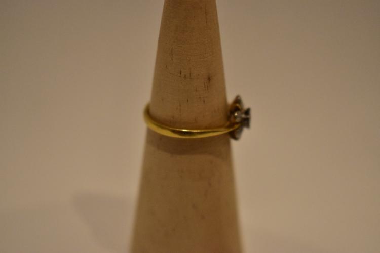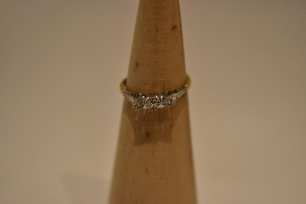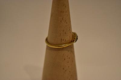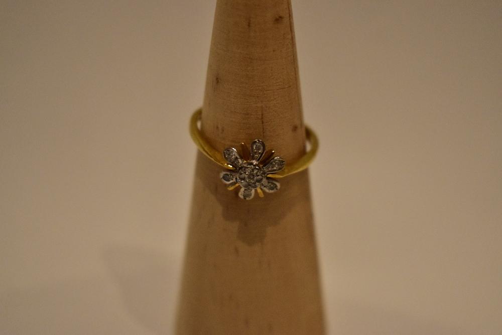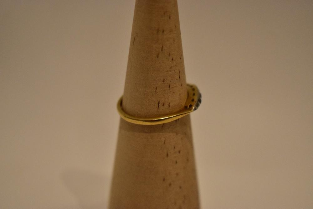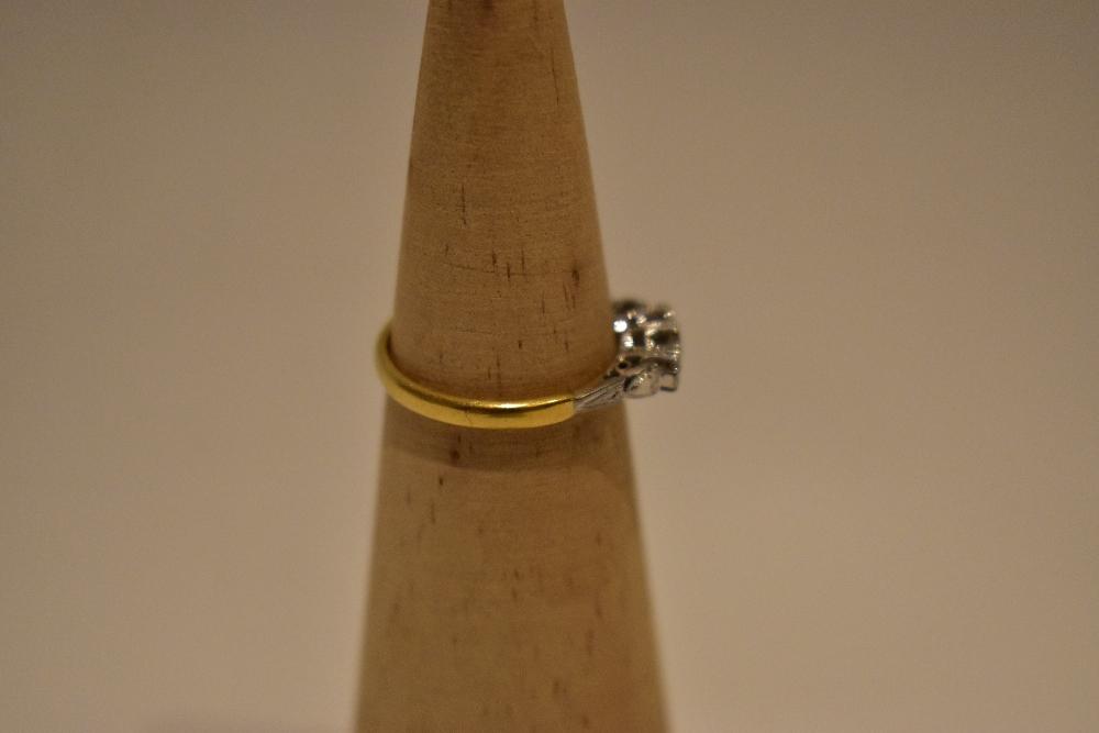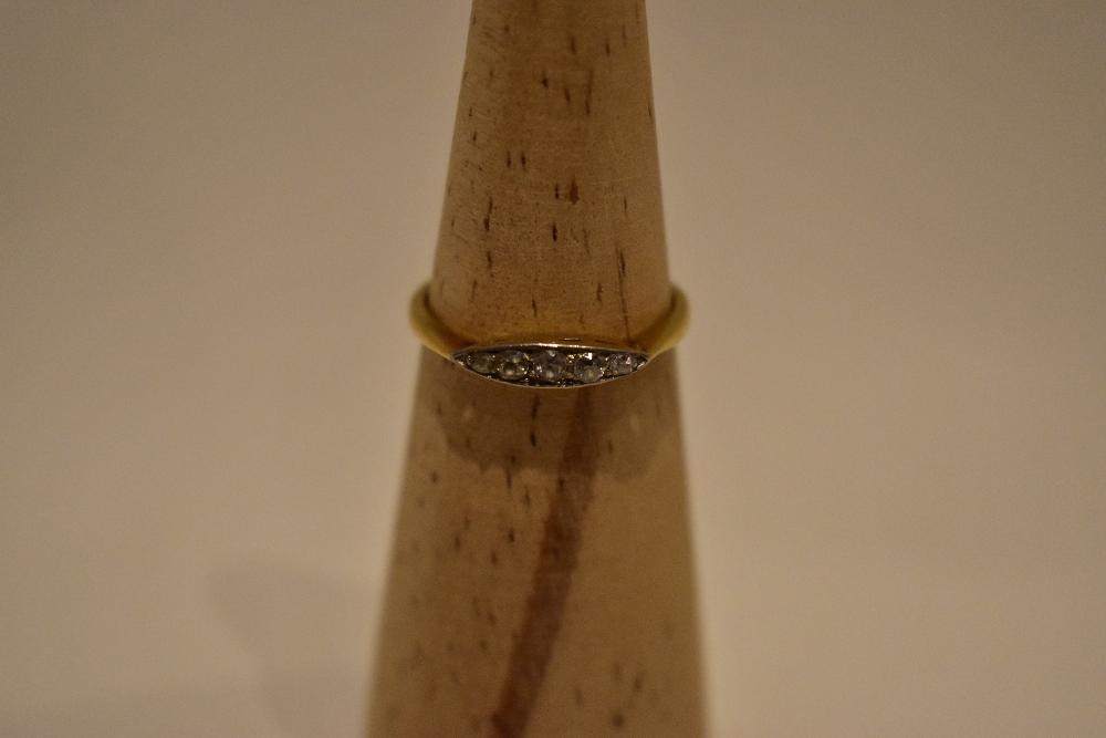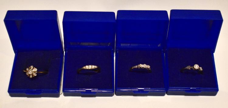 Lot 87 of 616: Four 18ct yellow gold dress rings including an example with oval shaped mount set with five diamonds, size Q, combined approx 10.1g (4).