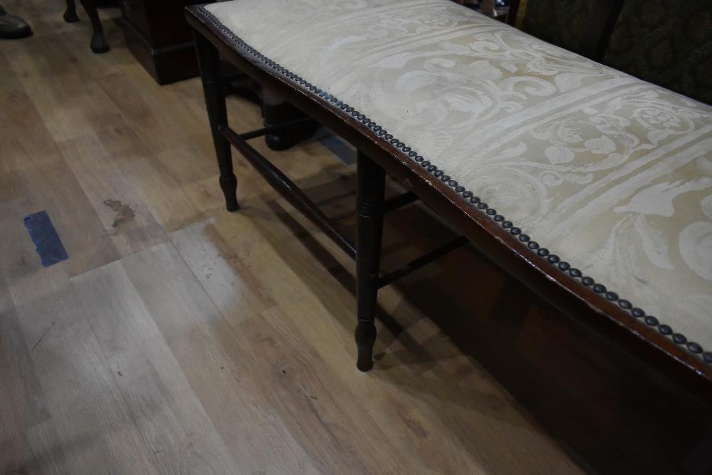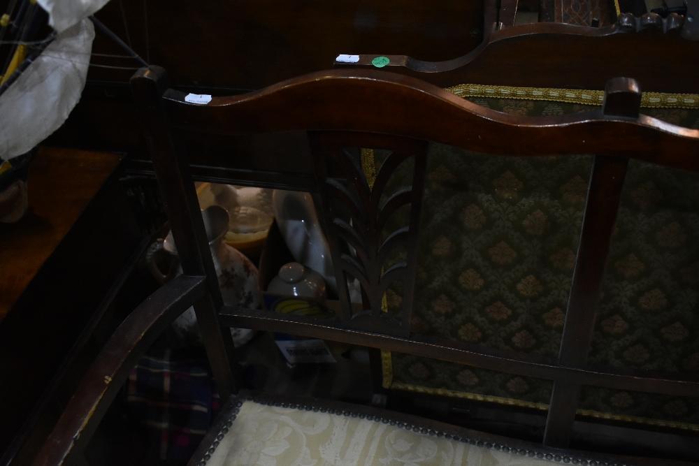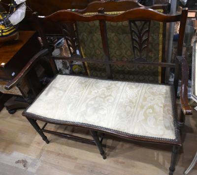 Lot 96 of 616: An Edwardian beech two seater settee with pierced splat backs on turned column supports, width 100cm, height 90cm, depth 47cm.