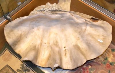 Lot 118 of 616: A modern fibreglass model of a large clam shell, width 72cm.