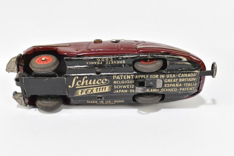 Lot 16 of 961: SCHUCO; a FEX 1111 tinplate clockwork vehicle in original box, length 14.5cm (2). PROVENANCE: The Collection of Jack Tempest.