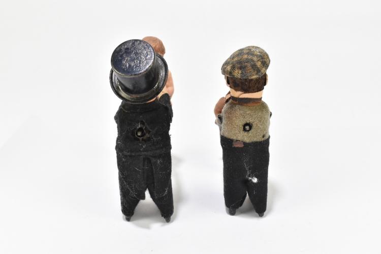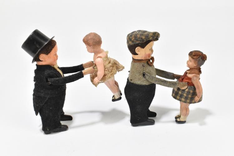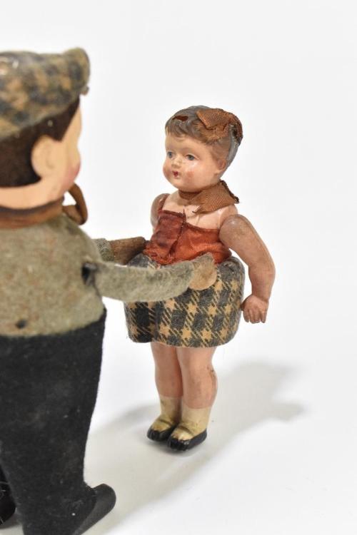 Lot 33 of 961: SCHUCO; two boy and girl dancing groups, one modelled as a boy in a top hat the other as a boy in a cap, tallest 13cm (2). PROVENANCE: The Collection of Jack Tempest.