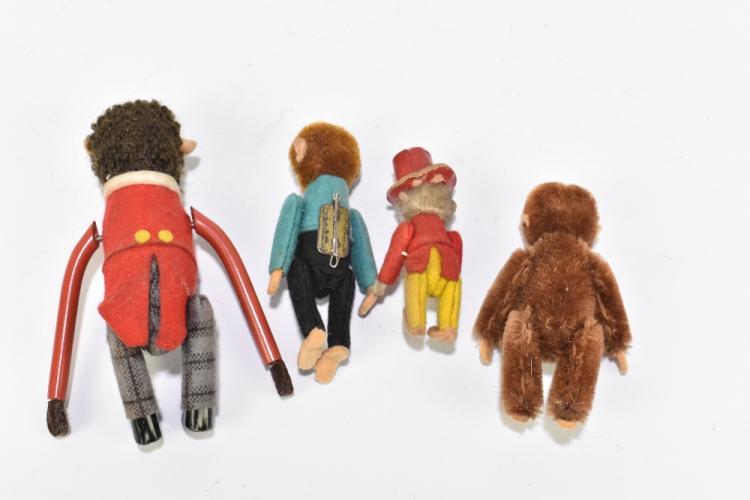 Lot 37 of 961: SCHUCO; a monkey scent bottle, in mid-brown plush, with a Schuco monkey brooch, a tin plate clockwork acrobatic monkey and a small articulated monkey in a top hat (4). PROVENANCE: The Collection of Jack Tempest.
