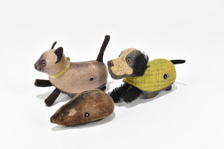 Lot 39 of 961: SCHUCO; three clockwork model animals comprising dog, cat and mouse, longest 12cm, and a clockwork bear (4) PROVENANCE: The Collection of Jack Tempest.