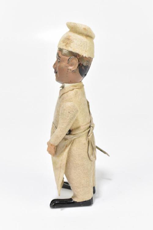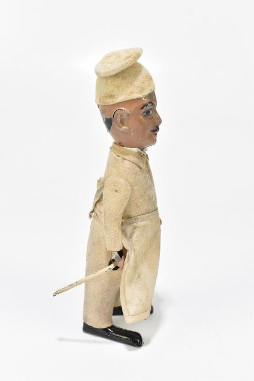 Lot 46 of 961: SCHUCO; a German tinplate clockwork model of a chef, with felt clothes and cotton apron, height 16.5cm. PROVENANCE: The Collection of Jack Tempest.