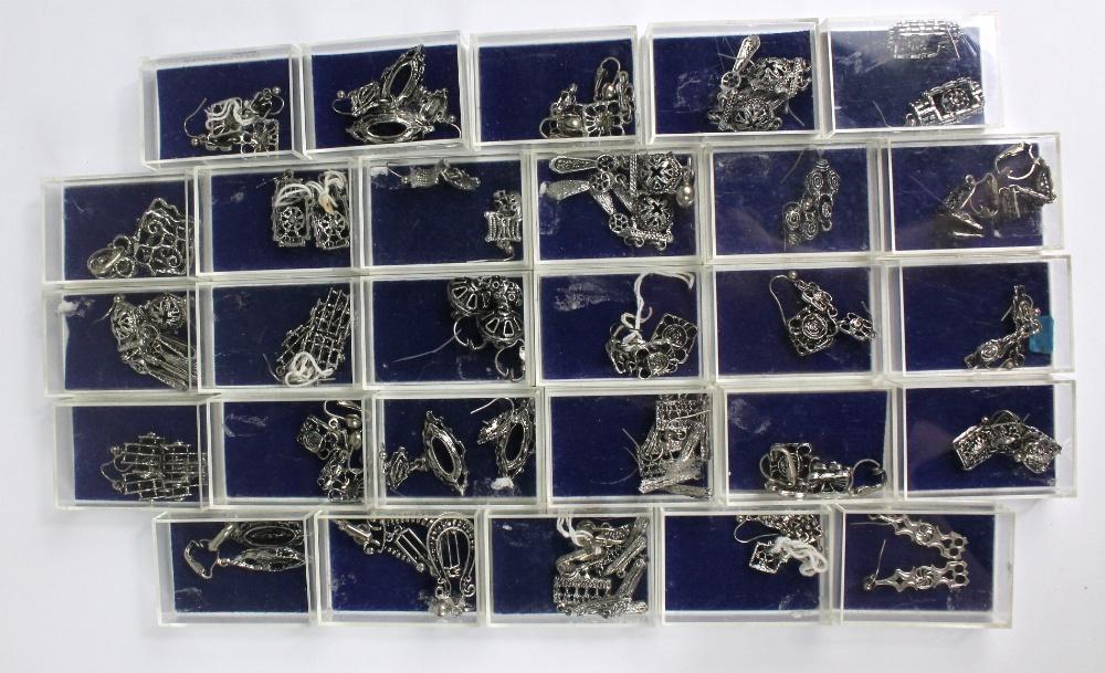 Lot 762 of 995: TAPANI VANHATALO; a collection of boxed Finnish silver plated pewter earrings of stylised design.