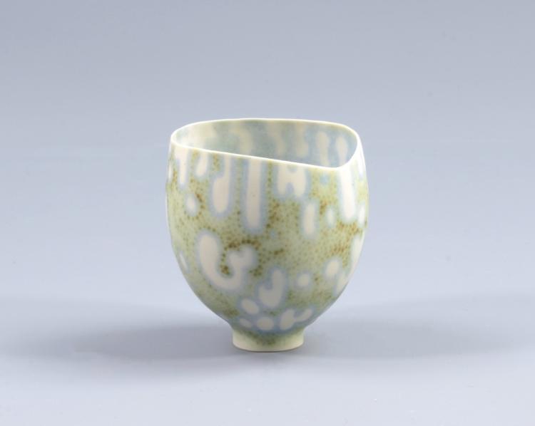 Lot 53 of 1144: MARY ROGERS (born 1929); a small porcelain footed vase, abstract pattern on stippled ground, incised MER mark, height 8cm.