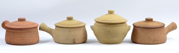 Lot 621 of 1144: Leach Pottery; four stoneware casseroles, impressed pottery marks, largest diameter (including handle) 24cm (4).