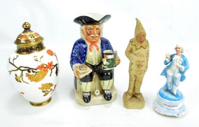 Antiques & Fine Art with Asian Art & Musical Instruments(#130) 17/05/2018 10:00 AM GMT CLOSED Auction Information Advanced Search ▼ Items per page 122448 Advanced Search Sort by DefaultTime LeftLot#Lot NameNewestHighest PriceLowest PriceBidsViews Filter By Categories Clocks: Wall Clocks Collectors' Items Textiles Pictures: Traditional Watercolours Asian Art: Oriental & Eastern Works of Art Militaria: Section 1 Firearms Ephemera Toys & Games: Toys Ceramic Figures Garden and Architectural Silver Clocks: Mantel clocks Metalware Pictures: Prints, Etchings, Engravings & Maps Asian Art: Japanese Works of Art Furniture: Reproduction Jewellery: Costume Jewellery Books Scientific Instruments Ceramics Carpets & Rugs Plated Items Clocks: Carriage Clocks Militaria Pictures: Northern & Contemporary Oils Asian Art: Chinese Works of Art Furniture: Arts and Crafts & 20th Century Design Jewellery Barometers Sporting Decorative Arts Lighting Glass Watches: Pocket Watches Musical Instruments & Mechanical Music Pictures: Northern & Contemporary Watercolours Beswick Furniture: Oak & Vernacular Coins Clocks: Longcase Clocks Automobilia Bronze & Other Sculptures Pictures: Traditional Oils Ethnic & Tribal Art Watches: Wristwatches Pictures: Northern & Contemporary Prints Toys & Games: Trains Doulton Furniture: Traditional General Category match ANY of the aboveALL of the above Featured Exclude closed lots Price Auctioneer All auctioneersLiverpooltest Lot Number Results: Viewing items 721-768 of 2312. View Lot 696 A mixed lot of ceramics to include Masons commemorative ginger jar, Royal Stratford Princess of Wales rose etc, and a reverse moulded glass paperweight. Estimate£20 - £40Winning Bid£10StatusCLOSED Condition ReportWhite matt figure af, rose has chips, general wear throughout. View details Estimate£20 - £40Winning Bid£10StatusCLOSED Lot 697 A mixed group of ceramics to include a Royal Doulton cat, three Le Poet-Laval leaf plates, Markay Pottery fox, stoneware fish, etc. Estimate£50 - £80Winning Bid£10StatusCLOSED View details Estimate£50 - £80Winning Bid£10StatusCLOSED Lot 698 A group of 19th century Staffordshire ceramics including a spill vase, figure group, transfer decorated jug and cylindrical tea canister, etc. Estimate£30 - £50Winning Bid£20StatusCLOSED View details Estimate£30 - £50Winning Bid£20StatusCLOSED Lot 699 A group of blue and white ceramics including a Harvey plate decorated with a female at a well, a Byland Abbey, Yorkshire transfer decorated plate, a Chinese blue and white plate (af), a knife or pen rest etc. Estimate£30 - £50Winning Bid£50StatusCLOSED View details Estimate£30 - £50Winning Bid£50StatusCLOSED Lot 700 A mixed lot of ceramics to include a Thomas part dinner set, pair of Royal Vale sandwich plates, two Coalport 'Belfort' plates, a small quantity of cut glass and two Christening gowns. Estimate£20 - £40Winning Bid£10StatusCLOSED View details Estimate£20 - £40Winning Bid£10StatusCLOSED Lot 701 A mixed group of ceramics including an early 19th century Royal Crown Derby Imari dish, a Royal Worcester plate with gold and silver detail, further mixed and a small quantity of Oriental ceramics. Estimate£40 - £60Winning Bid£25StatusCLOSED View details Estimate£40 - £60Winning Bid£25StatusCLOSED Lot 702 A 19th century Meissen porcelain figure of Venus with two Cupids, marked to base, no.865, height 23cm (af). Estimate£100 - £150Winning Bid£300StatusCLOSED Condition ReportA reglued chip to front of the base and five areas of chips along the edge including two larger example, loss to lower part of the bow of one of the cupids, losses to both sides of a band around Venus' right wrist. View details Estimate£100 - £150Winning Bid£300StatusCLOSED Lot 703 A Meissen porcelain figure of a seated man drinking wine at a table with a large ewer, marked to base, no.1447, height 22cm (af). Estimate£70 - £100Winning Bid£500StatusCLOSED Condition ReportThe item fro the gentleman's left hand is missing (broken off). One side of the spout of the ewer is restored. Chip underneath the front of the base. View details Estimate£70 - £100Winning Bid£500StatusCLOSED Lot 704 A Meissen porcelain figure group depicting a kneeling man and woman pleading with a gentleman, on naturalistic encrusted base, marked underneath, no.B100, height 22.5cm (af). Estimate£100 - £150Winning Bid£580StatusCLOSED Condition ReportThere are numerous losses to the encrusted decoration, chip to the kneeling gentleman's finger, loss and crude restoration to the hat of the standing gentleman. View details Estimate£100 - £150Winning Bid£580StatusCLOSED Lot 705 A Meissen porcelain figure group depicting a gentleman kissing the hand of a seated woman and a young faun with chest of scrolls and letters, marked to base, width 13cm (af). Estimate£70 - £100Winning Bid£400StatusCLOSED Condition ReportThe clasp of the chest has been broken off. Numerous nibbles to the edge of the base covered with gold paint. Small chip to one of the faun's hooves. Chip to the corner of the gentleman's frock. View details Estimate£70 - £100Winning Bid£400StatusCLOSED Lot 706 A German porcelain figure group depicting court salon scene, length 28cm, with Meissen KPM asterisk mark to the back (restored), and two crinoline figures of ladies (3). Estimate£70 - £100Winning Bid£140StatusCLOSED Condition ReportThere is an extensive repair to the dog's tail and part of his back, the head of the lady in the centre has also been restored (reattached). View details Estimate£70 - £100Winning Bid£140StatusCLOSED Lot 707 A pair of German porcelain figures modelled as a boy and girl picking grapes, stamped to base 'Saxe', height 23cm (2). Estimate£20 - £30Winning Bid£40StatusCLOSED View details Estimate£20 - £30Winning Bid£40StatusCLOSED Lot 708 A pair of early 20th century Continental porcelain figures of a gentleman and his companion, both with sheep and dog by their feet, height 17cm. Estimate£30 - 