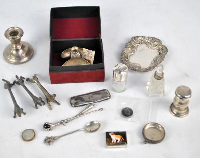 Antiques & Fine Art with Stamps & Ephemera(#127) 22/02/2018 10:00 AM GMT CLOSED Auction Information Advanced Search ▼ Items per page 122448 Advanced Search Sort by DefaultTime LeftLot#Lot NameNewestHighest PriceLowest PriceBidsViews Filter By Categories Automobilia Furniture: Reproduction Plated Items Clocks: Longcase Clocks Sporting Carpets & Rugs Beswick Jewellery: Costume Jewellery Collectors' Items Pictures: Traditional Watercolours Ephemera Furniture: Oak & Vernacular Glass Clocks: Mantel clocks Musical Instruments & Mechanical Music Lighting Decorative Arts Jewellery Pictures: Traditional Oils Books Furniture: Arts and Crafts & 20th Century Design Ceramic Figures Clocks: Carriage Clocks Toys & Games: Toys Pictures: Northern & Contemporary Watercolours Asian Art: Oriental & Eastern Works of Art Coins Pictures: Prints, Etchings, Engravings & Maps Bronze & Other Sculptures Furniture: Traditional Ceramics Watches: Wristwatches Scientific Instruments Pictures: Northern & Contemporary Oils Ethnic & Tribal Art Silver Clocks: Wall Clocks Metalware Garden and Architectural Doulton Watches: Pocket Watches Textiles Pictures: Northern & Contemporary Prints Category match ANY of the aboveALL of the above Featured Exclude closed lots Price Auctioneer All auctioneersLiverpooltest Lot Number Results: Viewing items 1105-1152 of 1872. View Lot 1209 PADGETT & BRAHAM LTD; a George VI hallmarked silver backed five piece dressing table set with overall engine turned decoration, comprising a pair of hand brushes, a pair of coat brushes and a hand mirror, length 25cm, each piece inscribed 'Priscilla', London 1938, and a circular jewellery box with mirrored lid, Elkington & Co, inscribed 'Jean' to the lid, Birmingham 1924, diameter 12.5cm, also an oval mustard pot (7). Estimate£100 - £150Winning Bid£90StatusCLOSED View details Estimate£100 - £150Winning Bid£90StatusCLOSED Lot 1210 A group of variously hallmarked silver backed dressing table items to include an Art Nouveau coat brush, J & R Griffin, Chester 1909 (majority af), also two pairs of silver handled glove stretchers and a shoe horn. Estimate£50 - £80Winning Bid£60StatusCLOSED View details Estimate£50 - £80Winning Bid£60StatusCLOSED Lot 1211 ADIE BROS LTD; a George V hallmarked silver backed five piece dressing table set with engine turned decoration and vacant rectangular cartouches, comprising a hand mirror, length 28cm, a pair of hand brushes and a pair of coat brushes, Birmingham 1934, also a plain coat brush by William Devenport, Birmingham 1926 and an ebony example (7). Estimate£40 - £60Winning Bid£55StatusCLOSED View details Estimate£40 - £60Winning Bid£55StatusCLOSED Lot 1212 JAMES DEAKIN & SONS; a Victorian hallmarked silver pair of glove stretchers with repoussй foliate scroll decoration, Chester 1900, length 23.5cm, a further pair of silver handled ivory example, maker's mark rubbed, Birmingham 1902, a bakelite and lace lady's fan (af) and tool with needle (4). Estimate£40 - £60Winning Bid£20StatusCLOSED View details Estimate£40 - £60Winning Bid£20StatusCLOSED Lot 1213 MAPPIN & WEBB; a large Edward VII hallmarked silver fronted rectangular bevelled table mirror embossed with foliate scrolls, Birmingham 1901, with velvet lined easel back and vacant cartouche to the top, 48 x 33cm. Estimate£100 - £150Winning Bid£130StatusCLOSED View details Estimate£100 - £150Winning Bid£130StatusCLOSED Lot 1214 Three hallmarked silver fronted photo frames to include a rectangular husk decorated example, maker's initials G & C Ltd, Birmingham 1819, aperture 13.5 x 8.5cm, and shaped square example with circular aperture, Birmingham 1906 (af) (3). Estimate£40 - £60Winning Bid£60StatusCLOSED View details Estimate£40 - £60Winning Bid£60StatusCLOSED Lot 1215 WI BROADWAY & CO; an Elizabeth II hallmarked silver rectangular photo frame with easel back, 1988, aperture 10.5 x 7.5cm, and a small circular pill box by Carr's of Sheffield, 1996, diameter 4cm, weighable silver approx 0.9ozt (2). Estimate£40 - £60Winning Bid£65StatusCLOSED View details Estimate£40 - £60Winning Bid£65StatusCLOSED Lot 1216 HENRY MATTHEWS; a Victorian hallmarked silver photo frame with repoussй foliate scroll detail and velvet lined back, Birmingham 1899, 16.2 x 15.6cm, also seven variously hallmarked silver souvenir spoons (9). Estimate£30 - £50Winning Bid£80StatusCLOSED Condition ReportFrame: front with general wear and a few minor dents, back lacking stand. Spoons: one broken, losses to enamel where applicable, general wear throughout. View details Estimate£30 - £50Winning Bid£80StatusCLOSED Lot 1217 HENRY MATTHEWS; a Victorian hallmarked silver handled shoe horn, Birmingham 1894, a hallmarked silver trophy cup, Adie Bros, Birmingham 1937, height 14cm, and a circular silver fronted photo frame, Deakin & Francis, Birmingham 1912, diameter of aperture 6.5cm (3). Estimate£30 - £50Winning Bid£35StatusCLOSED View details Estimate£30 - £50Winning Bid£35StatusCLOSED Lot 1218 A group of variously hallmarked silver items to include a pin dish, Deakin & Francis, Birmingham 1900, length 11cm (af), a needle case, William Aitken, Birmingham 1911, length 7cm, a silver collared clear glass scent bottle, etc, also a set of three pewter knife rests modelled as animals (some af). Estimate£40 - £60Winning Bid£100StatusCLOSED View details Estimate£40 - £60Winning Bid£100StatusCLOSED Lot 1219 ADIE & LOVEKIN LTD; an Edward VII hallmarked silver table lighter modelled as a Roman oil lamp on loaded foot, Birmingham 1913, length 9.5cm, a silver handled ivory bladed letter opener, Sampson Mordan & Co, London 1889, length 20.5cm, and a silver circular powder box with mirrored lid, W & H Ltd, Birmingham 1917 (3). Estimate£30 - £50Winning Bid£65StatusCLOSED Condition ReportLamp: handle at an angle, two pronounced dents near handle, further minor dents and general wear, lid very slightly crimped. Powder box: mirror at fault, glazed over, lid interior c